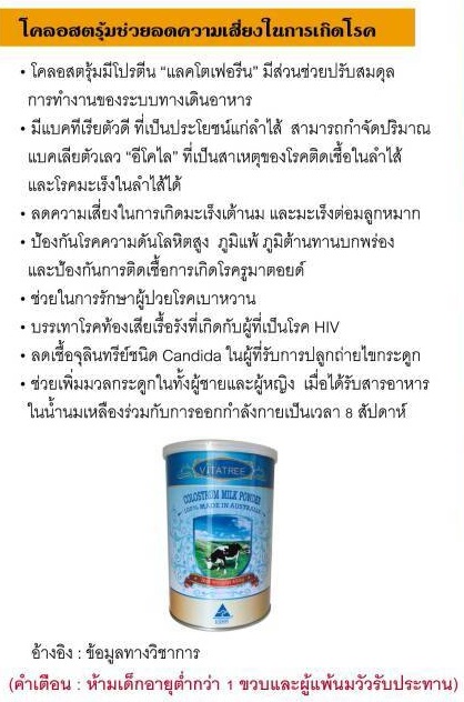 Colostrum is also rich in immunoglobulins which are certain types of protein involved in promoting the immune system and fighting germs. Especially, children and the elderly or suitable for all ages.